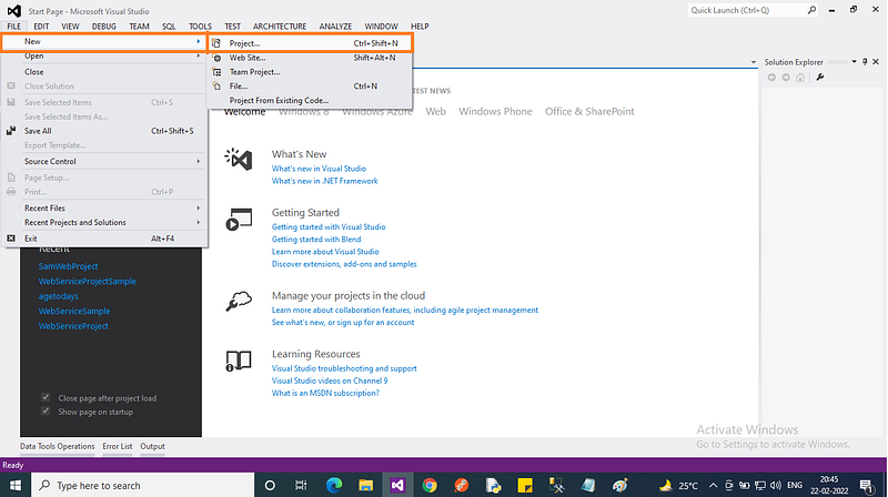 - Open Microsoft Visual Studio.NET.